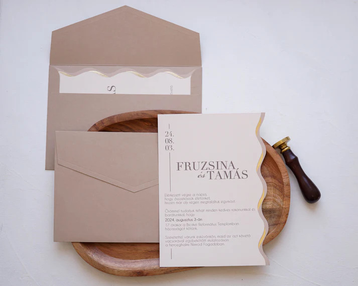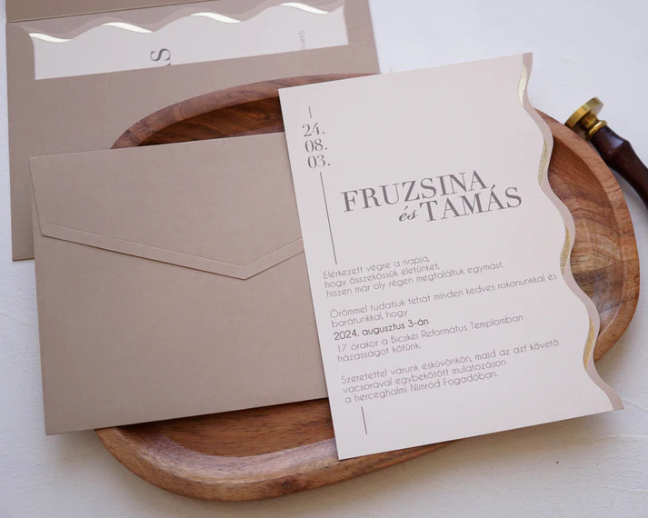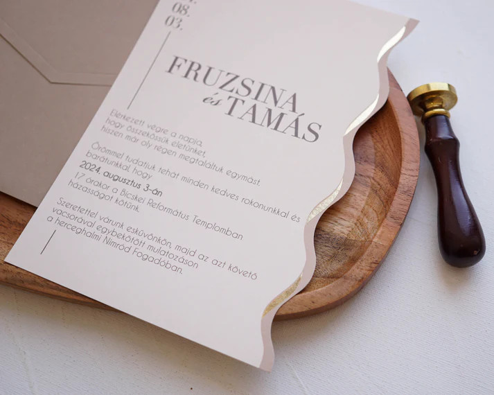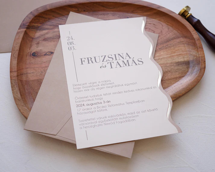 Ez a prémium esküvői meghívó tökéletes választás azoknak a pároknak, akik elegáns, kifinomult és különleges megjelenést szeretnének. A letisztult design és a minőségi kivitel biztosítja, hogy a meghívó már az első pillanatban maradandó benyomást keltsen a vendégek számára.
