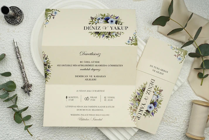 A 9314 Esküvői Meghívó romantikus, virágos mintájával különleges hangulatot teremt már a meghívás pillanatában. A finom virágmotívumok és elegáns kialakítás tökéletes választássá teszik természetközeli, romantikus vagy vintage hangulatú esküvők számára.