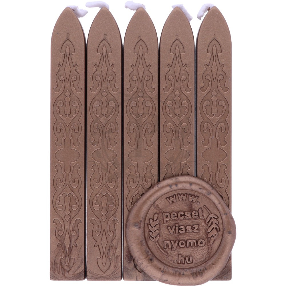 A bronz színű kanócos pecsétviasz a klasszikus pecsételés egyik legelegánsabb, természetes hatású változata. A beépített kanócnak köszönhetően rendkívül praktikus: csak meggyújtod, és már csepegtetheted is a viaszt – nincs szükség külön olvasztókanálra vagy gyertyára.