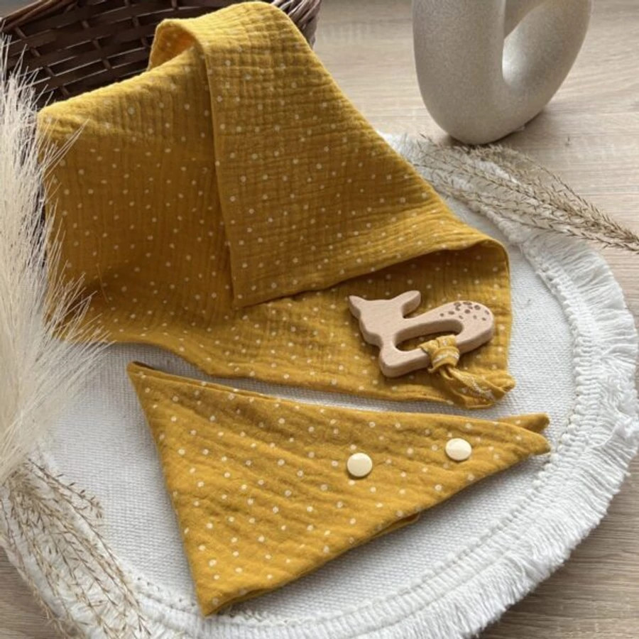 - Nyálkendő (36×25 cm): állítható, praktikus pamut előke
