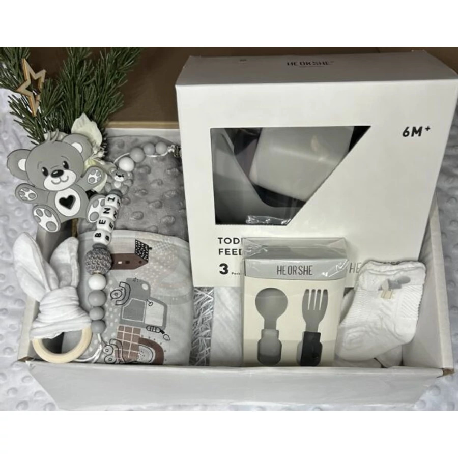 A Babaváró ajándékcsomag – maxi – szürke egy prémium, gazdagon összeállított ajándékszett, amely tökéletes választás különleges babaváró alkalmakra vagy kiemelt babalátogató ajándéknak. A szürke színvilág modern, elegáns és letisztult, így ideális azok számára, akik visszafogott, mégis stílusos ajándékot keresnek.
