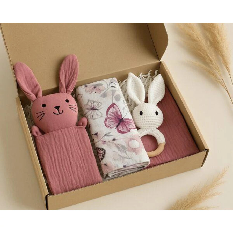 A csomag praktikus és puha baba kiegészítőket tartalmaz, amelyek a mindennapokban is hasznosak, miközben esztétikus és szeretetteljes meglepetést nyújtanak a szülőknek. A termékek természetes anyagokból készülnek, így biztonságosak a baba számára.