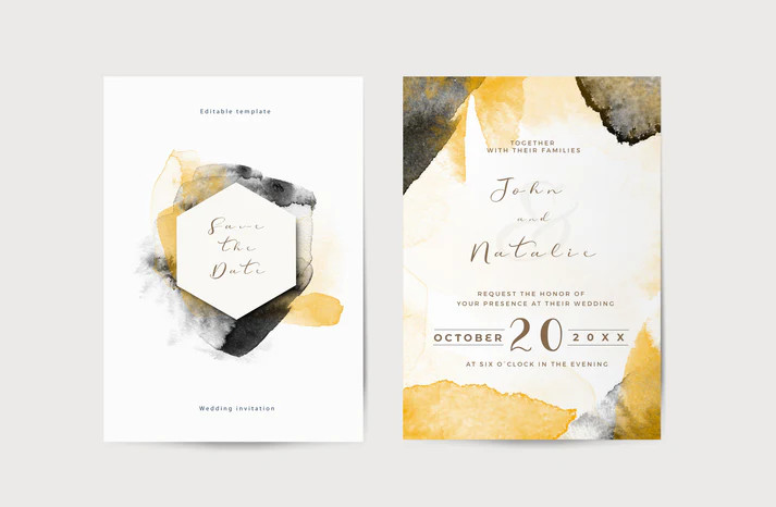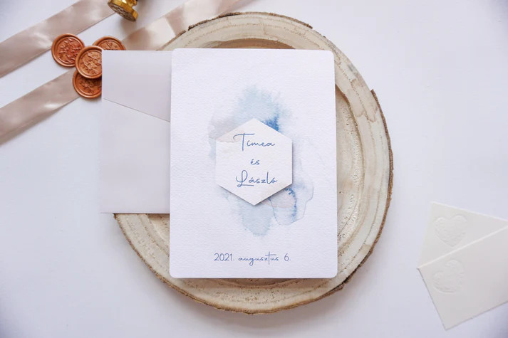 Ez az akvarell hatású esküvői meghívó romantikus és elegáns választás azoknak a pároknak, akik művészi és különleges megjelenést szeretnének. Az akvarell stílus finom színátmenetei egyedi és harmonikus hangulatot teremtenek, amely tökéletesen illik klasszikus és modern esküvőkhöz egyaránt.