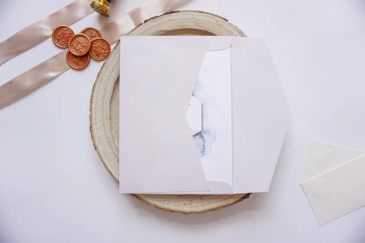 A meghívót 280 g/m2-es prémium minőségű papírból készítjük. Kérésre választható fehér vagy krém színű papírból is.