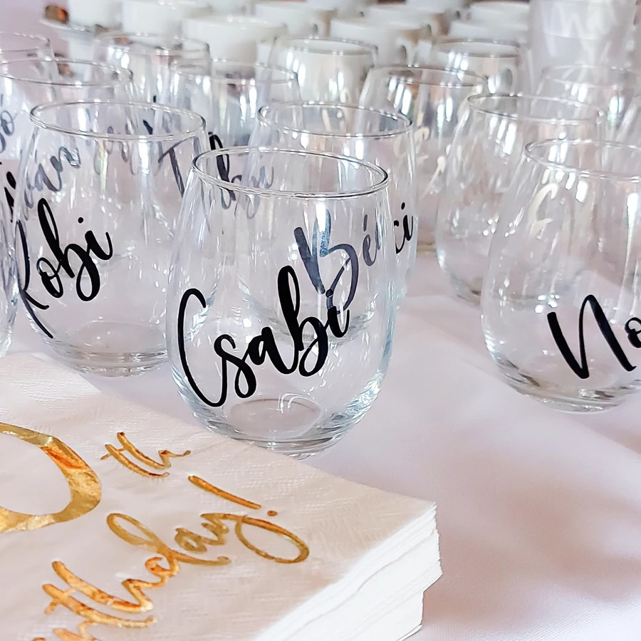 A feliratozott vizes/whiskey pohár 350 ml egy klasszikus, masszív üvegpohár, amely tökéletes választás elegáns, mégis praktikus rendezvényekhez. Erős üvegből készül, így ellenálló és hosszú távon is használható. Ha mégis eltörik, biztonságosan apró darabokra esik szét, így kevésbé balesetveszélyes.