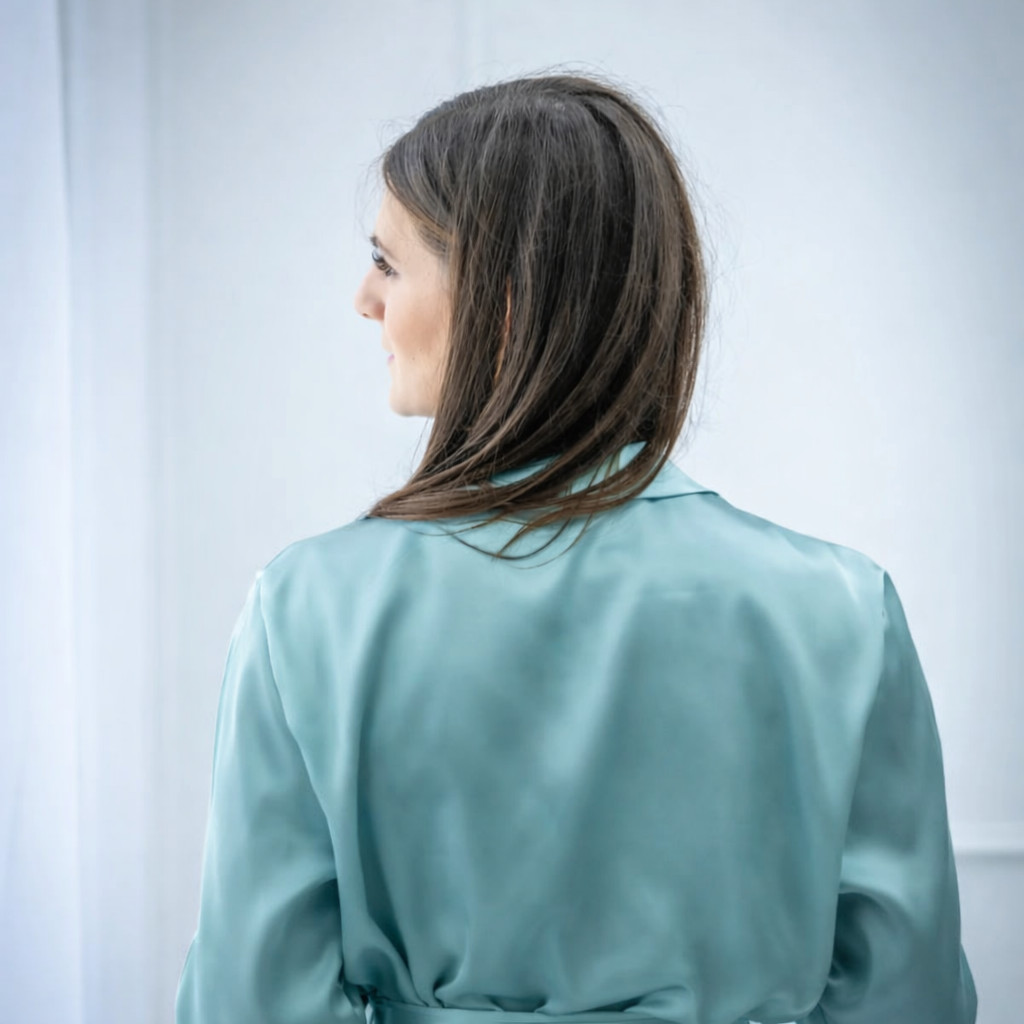 A könnyű, fényes szatén anyag nemcsak látványos, hanem kényelmes viselet is a nagy nap reggelén. Tökéletes választás menyasszonynak és koszorúslányoknak, ha egységes, mégis figyelemfelkeltő stílust szeretnétek.