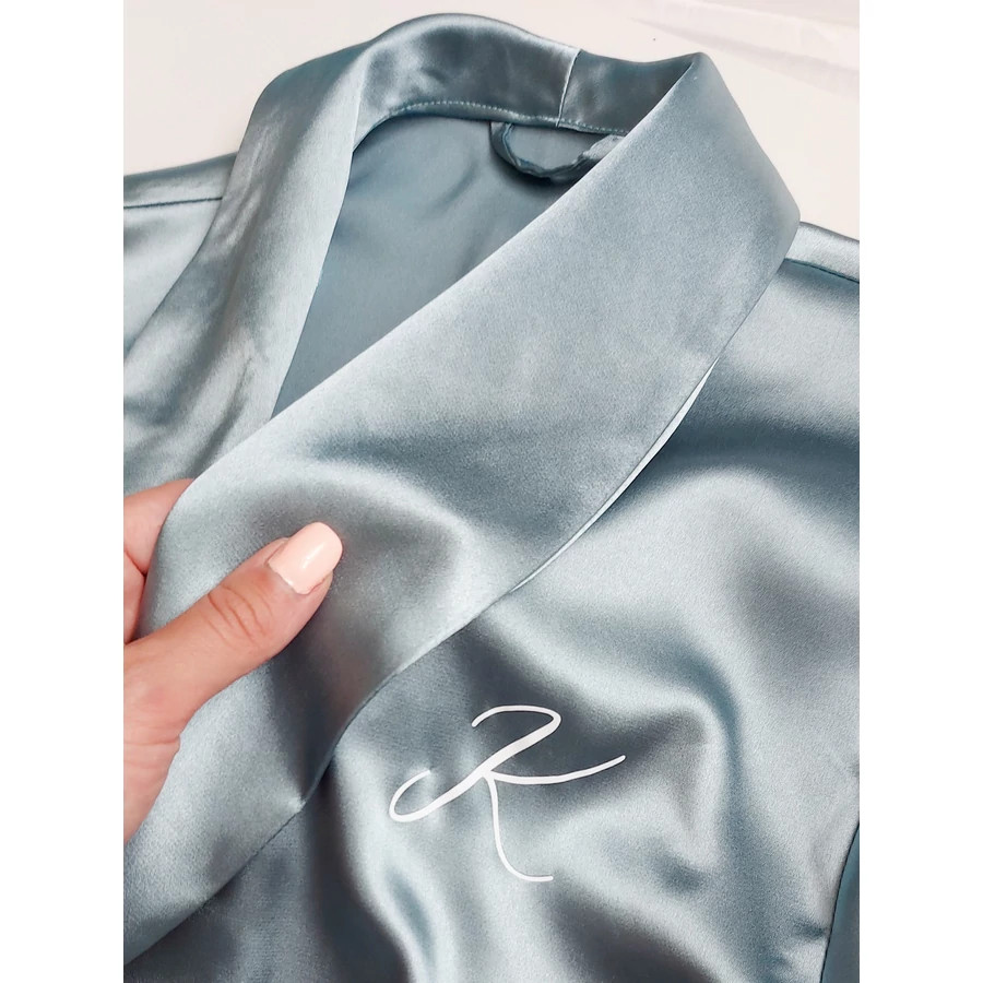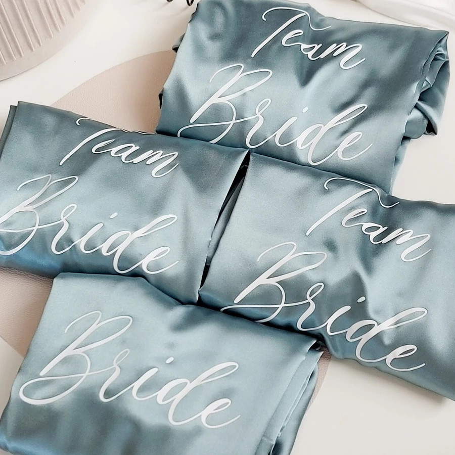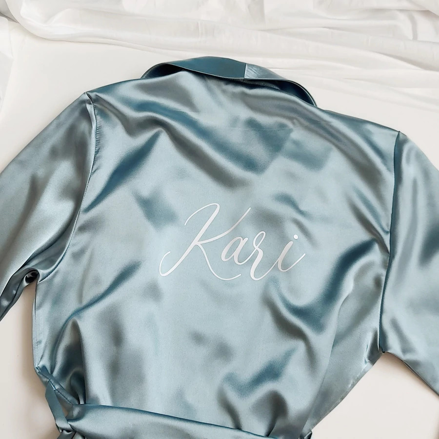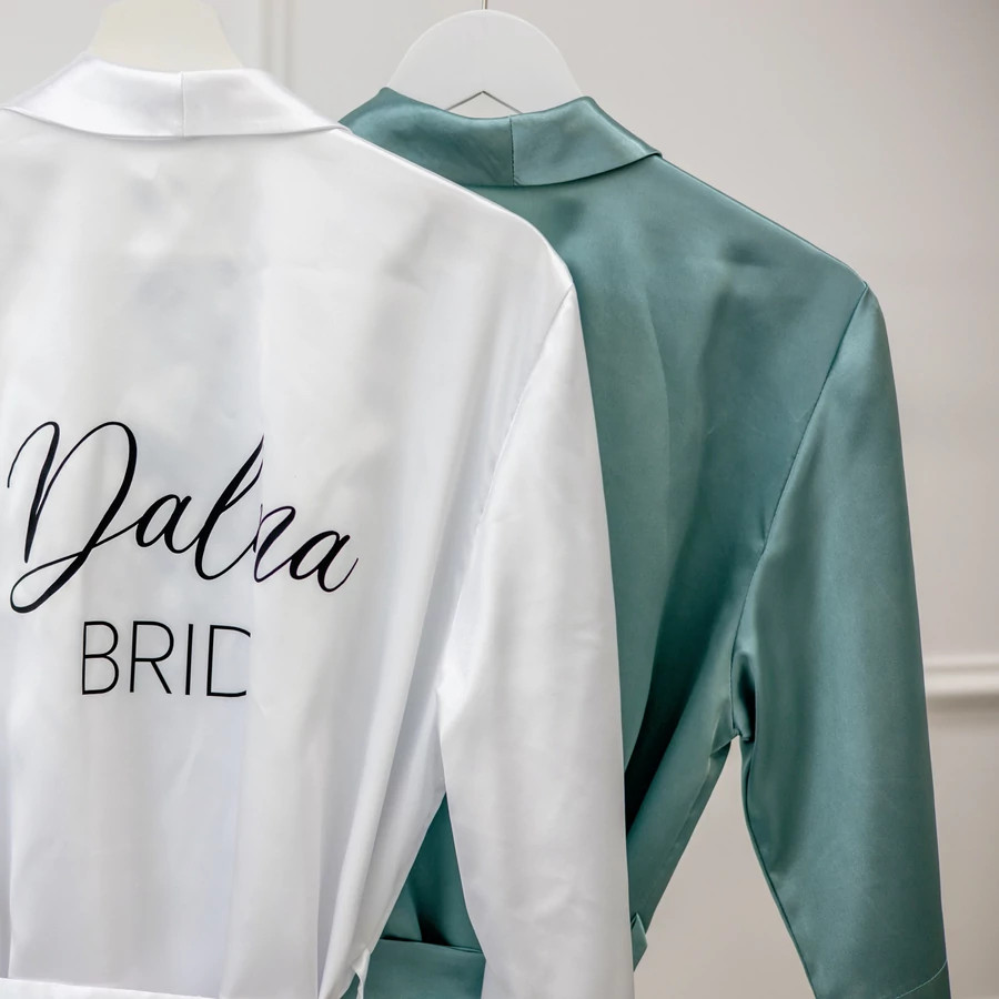 A köntös teljes mértékben személyre szabható: kérhetsz rá nevet, „Bride”, „Bridesmaid” vagy bármilyen egyedi feliratot. A felirat elhelyezhető a hátára, az elejére vagy akár mindkét oldalra is.