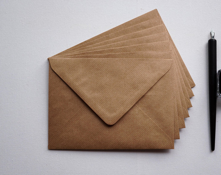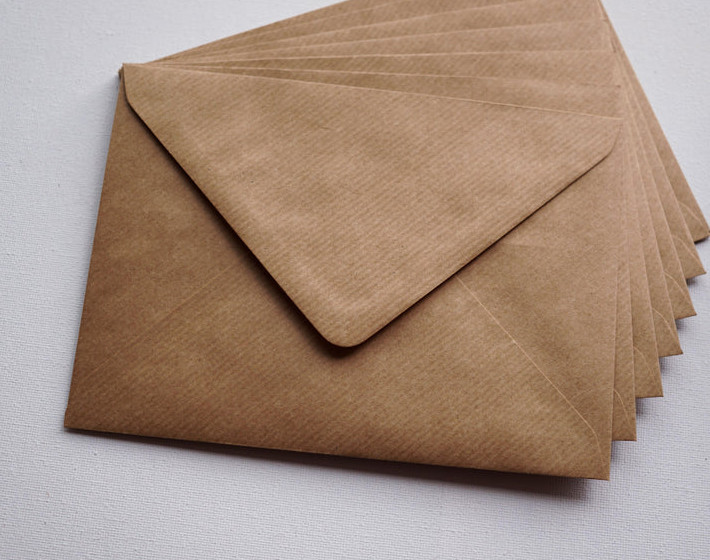 A kraft boríték különösen jól harmonizál fehér, arany vagy fekete nyomtatású meghívókkal, valamint minimalista vagy természetes stílusú dekorációval.