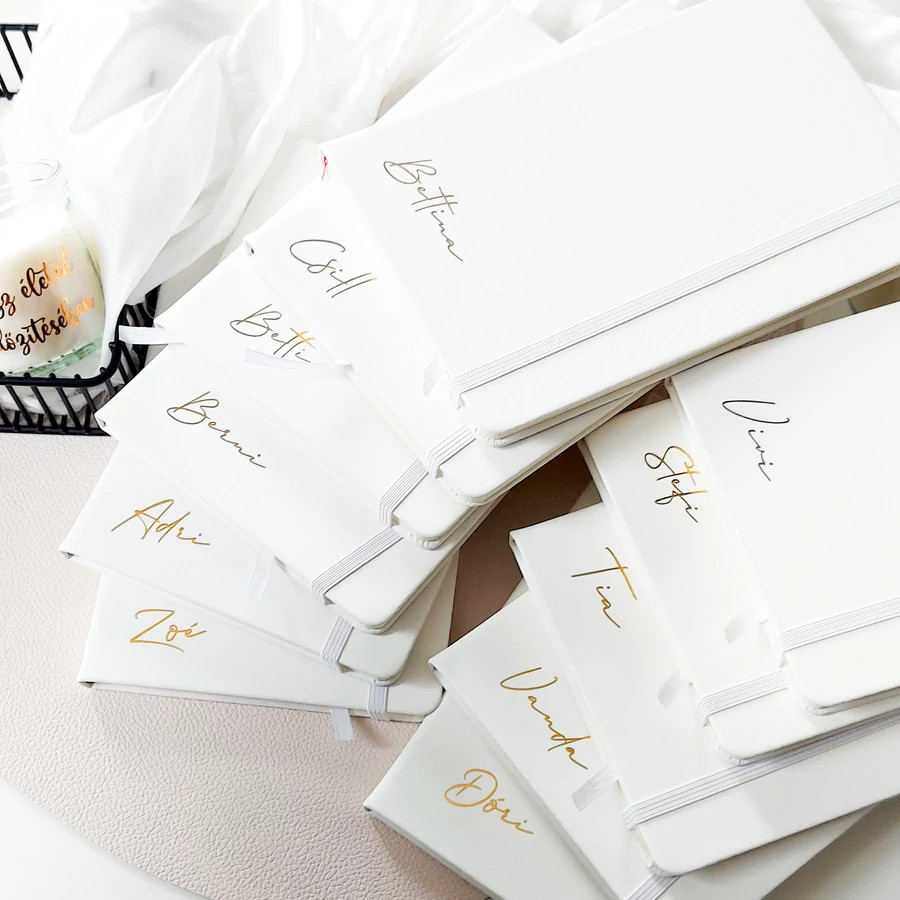 A jegyzetfüzet borítójára kérhető név, monogram vagy rövid felirat, így az ajándék valóban egyedi és személyes lesz. Nemcsak szép, hanem praktikus is – tökéletes jegyzeteléshez, tervezéshez vagy akár kreatív gondolatok rögzítéséhez.