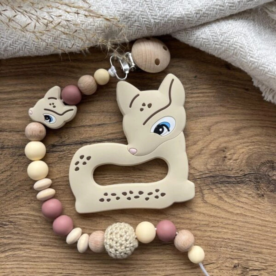 Az Őzike cumilánc rágókával egy aranyos és praktikus baba kiegészítő, amely segíti a mindennapokat és megkönnyíti a szülők életét. A kedves őzikés design szerethető megjelenést biztosít, miközben a cumilánc gondoskodik arról, hogy a cumi vagy rágóka mindig tiszta és kéznél legyen.