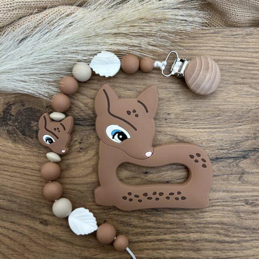 Őzike cumilánc rágókával-barna