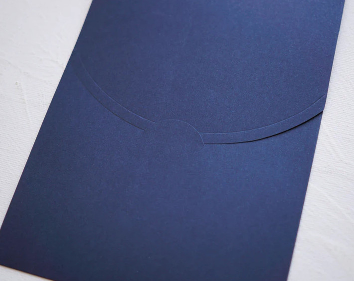 A sötétkék díszboríték 12,3 × 18,4 cm méretben elegáns és modern megjelenést biztosít meghívók, üdvözlőkártyák és különleges alkalmi nyomtatványok számára. A mély sötétkék árnyalat kifinomult hatást kelt, ezért különösen népszerű esküvői meghívók, elegáns rendezvények, jubileumi események vagy ünnepi alkalmak esetén. A boríték 120 g/m² minőségi papírból készül, amely stabil tartást biztosít a benne elhelyezett meghívók számára. A rövidebb oldalon nyíló kialakítás különleges és elegáns megjelenést ad a borítéknak, így a meghívó már a kézbe vételkor igényes benyomást kelt. A 12,3 × 18,4 cm-es méret kissé nagyobb a hagyományos B6 borítéknál, így ideális választás díszesebb vagy több elemből álló meghívók számára.