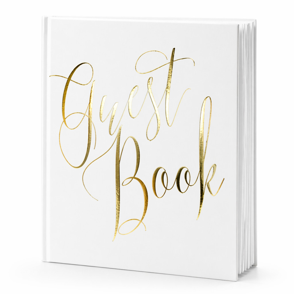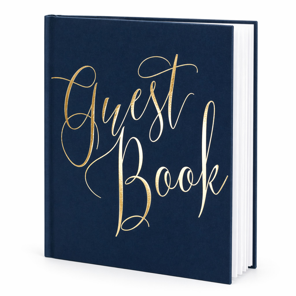 - Kialakítás: Keményfedeles vendégkönyv arany felirattal