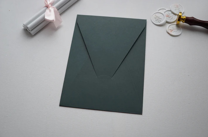 A sötét zöld díszboríték 19,8 × 14,2 cm méretben elegáns és prémium megjelenést biztosít meghívók, üdvözlőkártyák és különleges alkalmakhoz készített levelek számára. A mély zöld árnyalat kifinomult és természetközeli hangulatot teremt, ezért különösen népszerű esküvői meghívók, ünnepi meghívók, keresztelői vagy rendezvény meghívók csomagolásához.