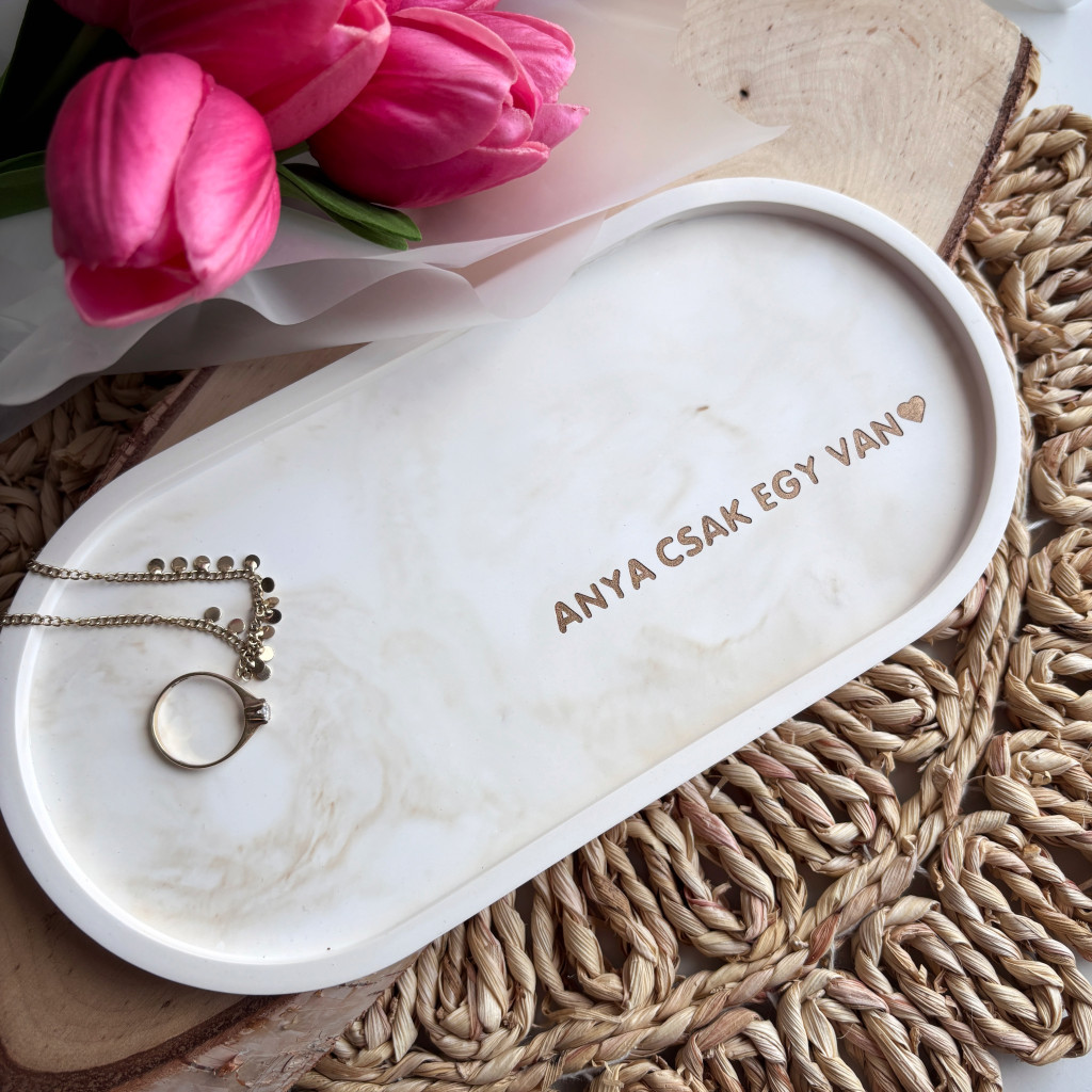 Az „Anya csak egy van” feliratos ékszertartó tálka egy igazán megható és személyes ajándék, amely tökéletes választás minden édesanya számára. Letisztult, elegáns megjelenése és mély jelentésű felirata miatt nemcsak dekoráció, hanem egy szeretetteljes üzenet is, amely nap mint nap emlékeztet az anyák pótolhatatlan szerepére.