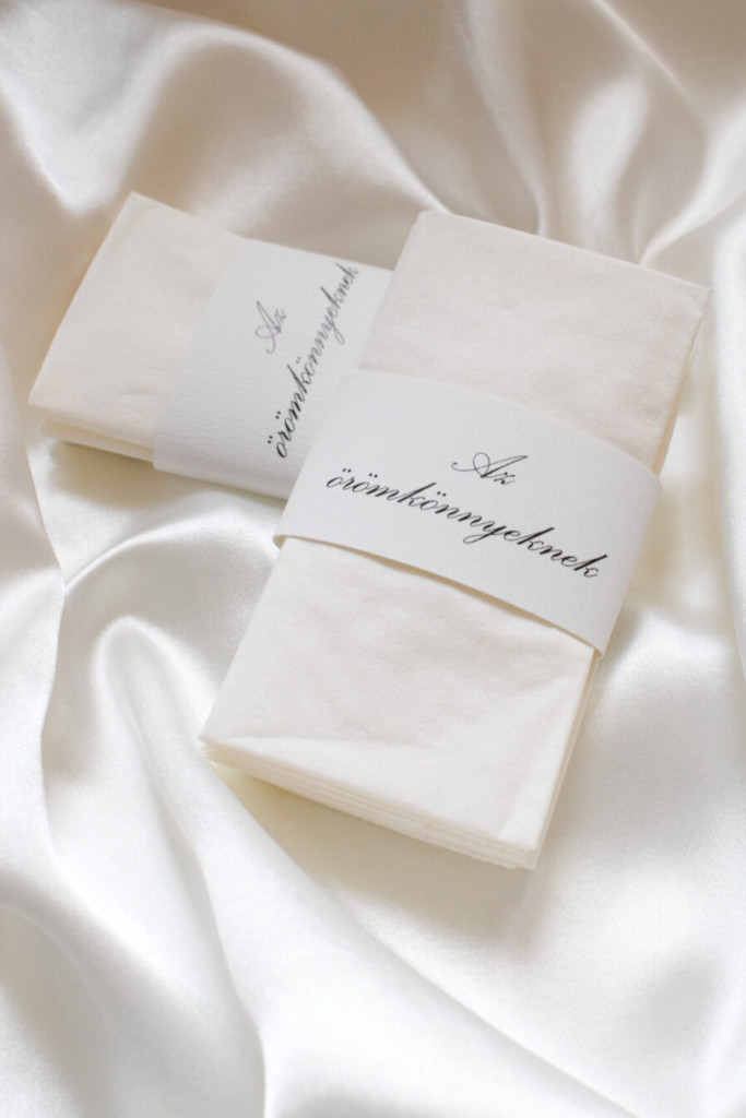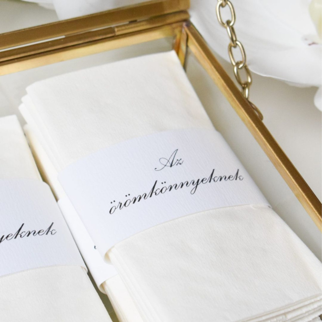 Az esküvők érzelmekkel teli pillanatai során – például a fogadalomtételnél vagy beszédeknél – gyakran szükség van egy zsebkendőre a meghatottság könnyeinek letörléséhez . Egy személyre szabott zsebkendő emellett maradandó emlékké válik, amely akár generációkon át is megőrizhető .