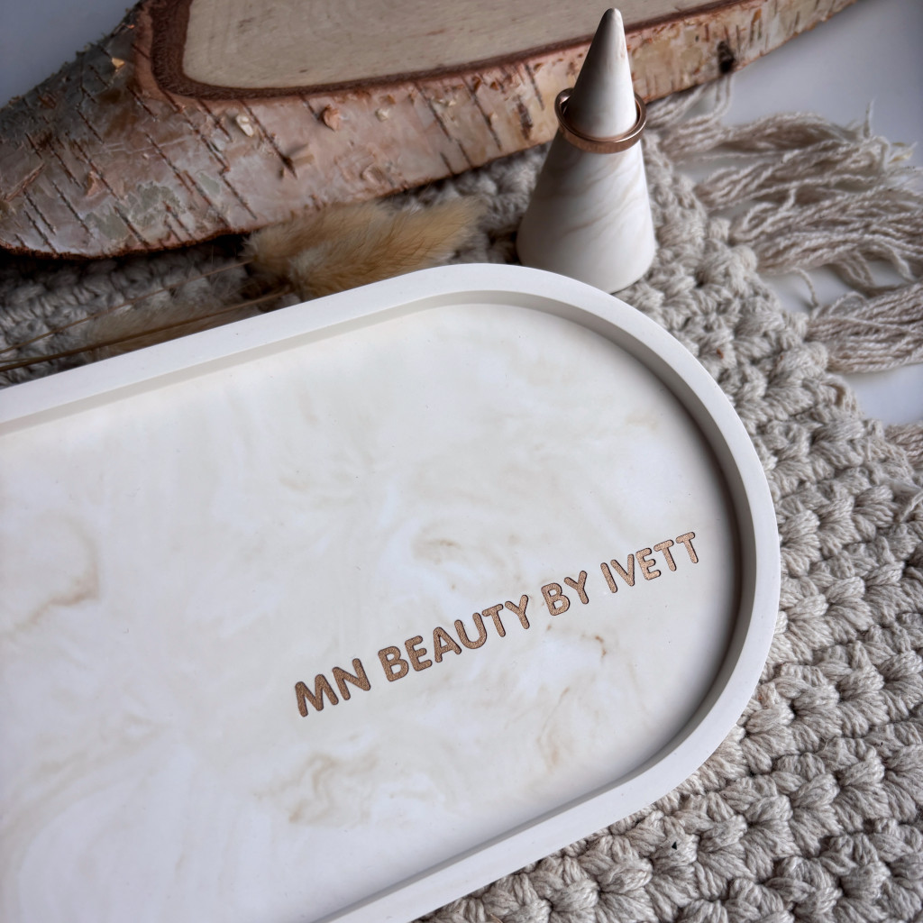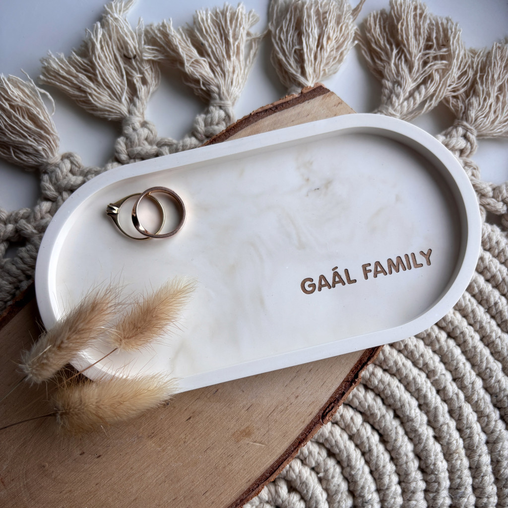 Az egyedi feliratos, nagy méretű ékszertartó tálka tökéletes választás, ha igazán személyes és látványos ajándékot keresel. A nagyobb felület lehetővé teszi, hogy hosszabb üzenetet, nevet, dátumot vagy akár egy különleges idézetet is elhelyezz rajta – így az ajándék még egyedibbé válik. A kézzel készült tálka természetes alapanyagokból készül, ezért minden darab megismételhetetlen. A letisztult bézs szín modern, elegáns megjelenést biztosít, amely bármilyen otthoni környezetbe harmonikusan illeszkedik. A nagy méretnek köszönhetően nemcsak dekoráció, hanem kifejezetten praktikus tároló is: ékszerek, kulcsok vagy egyéb apróságok rendszerezésére is ideális.