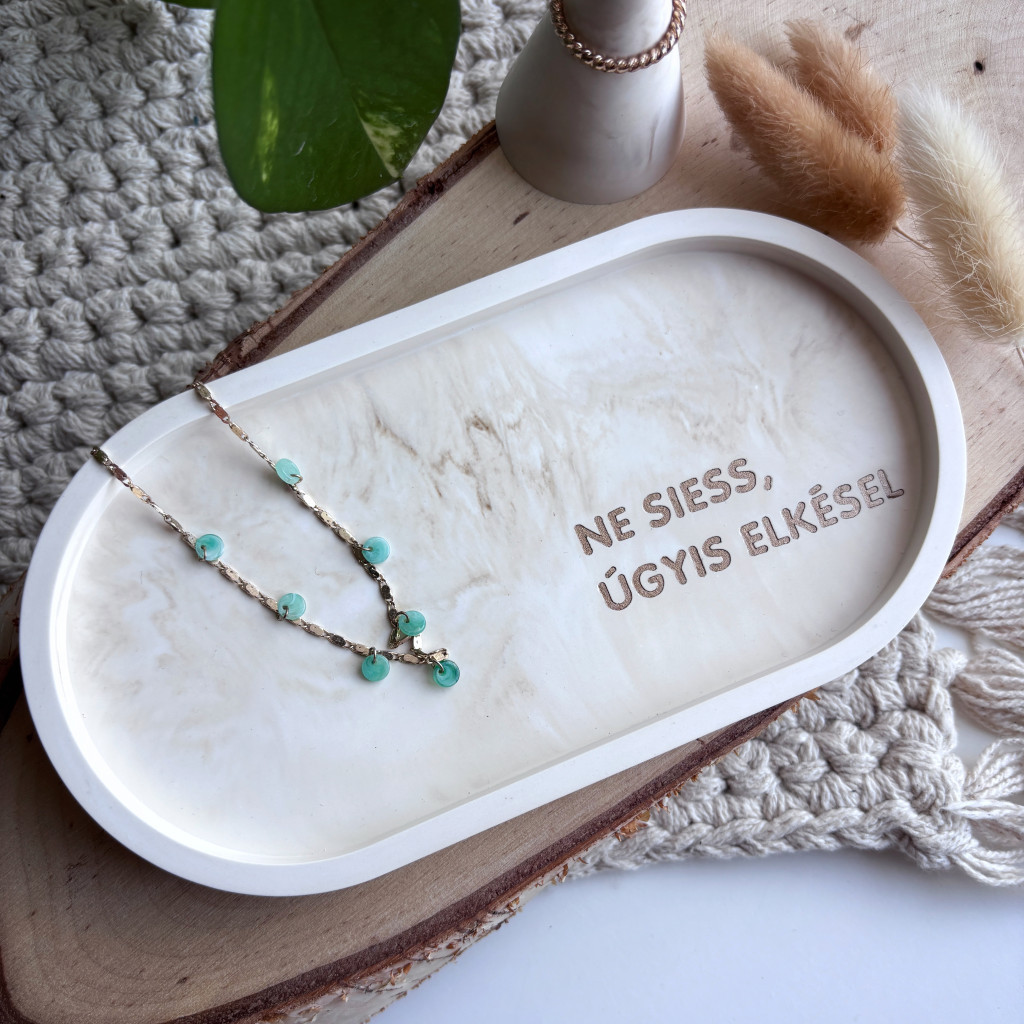 A kézműves ékszertartó tálkák nemcsak praktikusak, hanem dekorációként is funkcionálnak, így egyszerre szolgálnak rendszerezési és esztétikai célt.