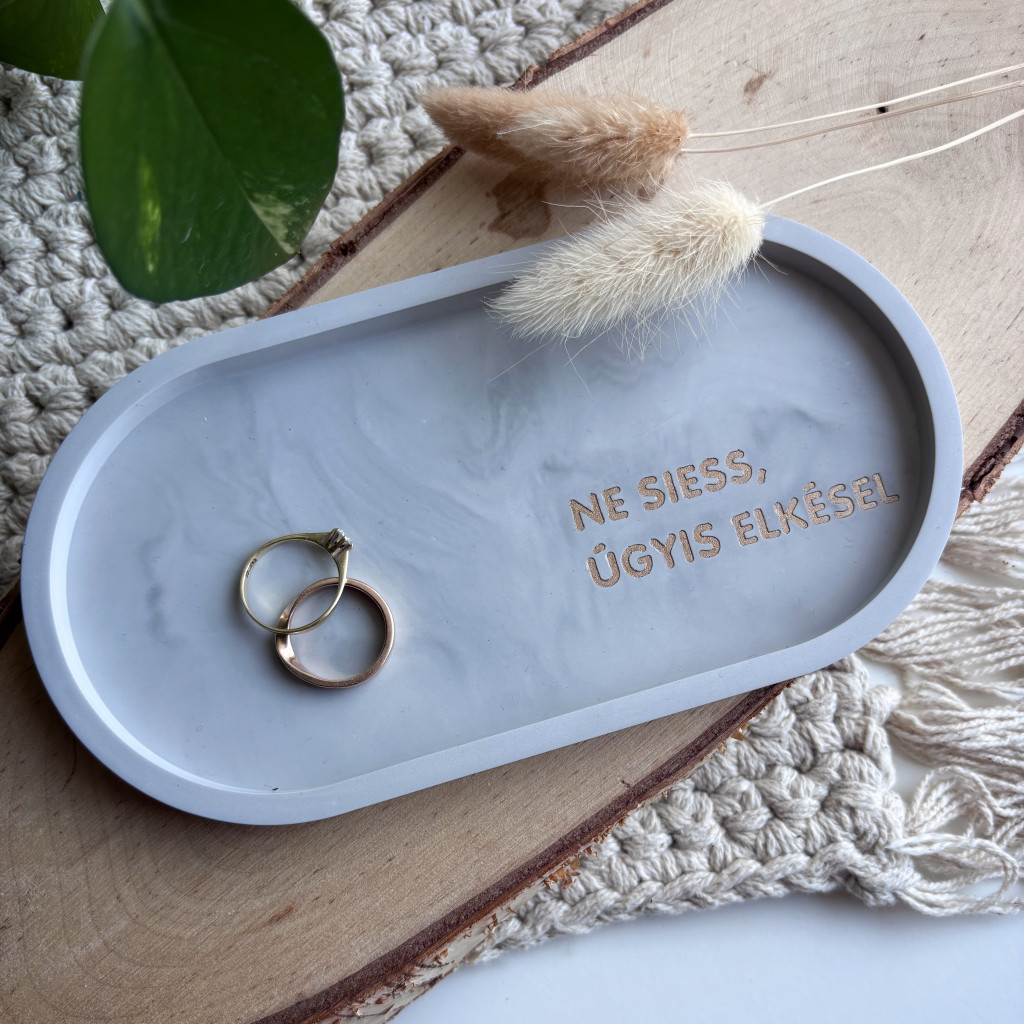 A „Ne siess, úgyis elkésel” feliratos ékszertartó tálka egy igazán egyedi és humoros ajándék, amely tökéletes választás azok számára, akik mindig egy kicsit késésben vannak – vagy egyszerűen csak szeretik a lazább, életvidám üzeneteket.