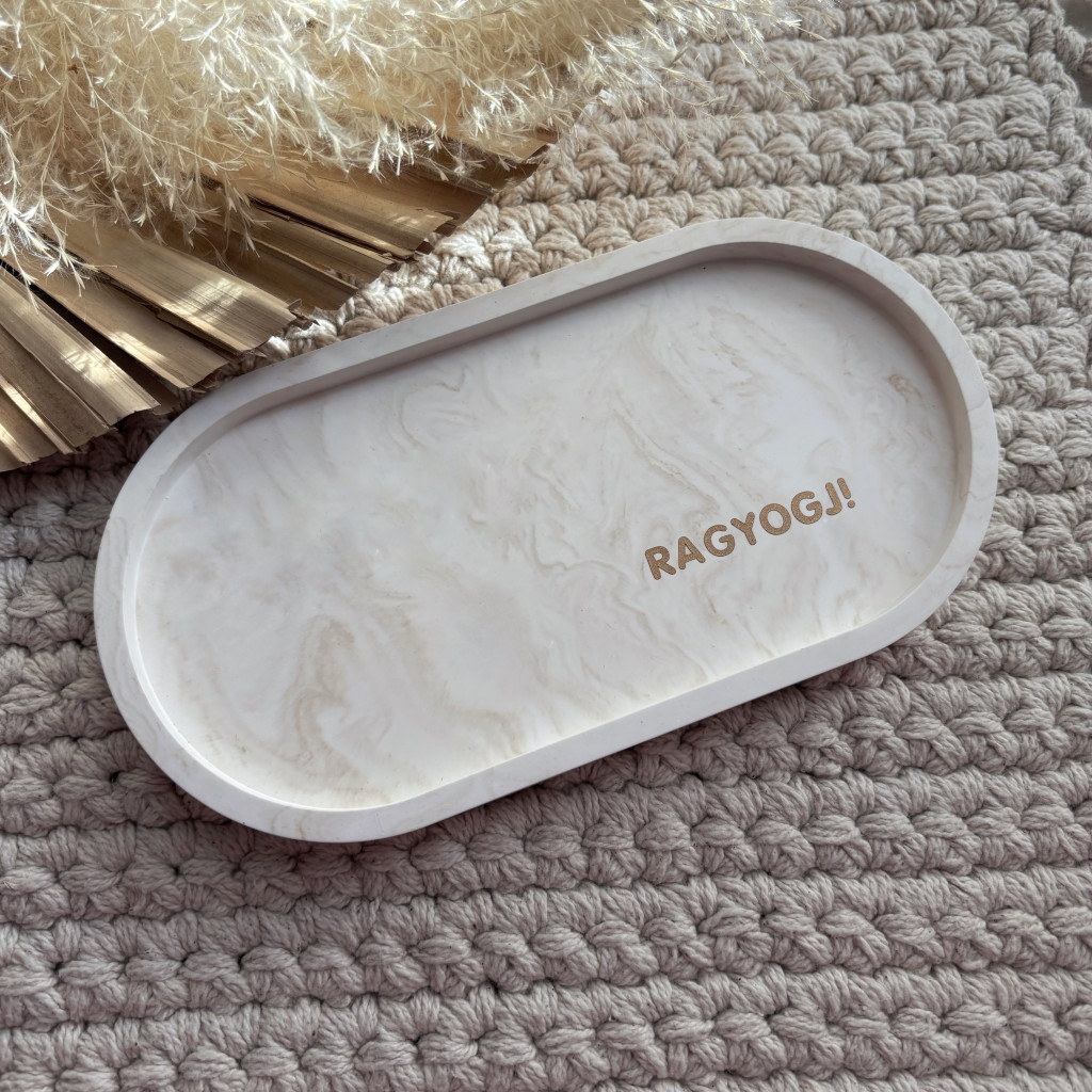 A „Ragyogj!” feliratos ékszertartó tálka egy inspiráló és stílusos ajándék, amely nemcsak praktikus tároló, hanem mindennapi pozitív megerősítés is. Ideális választás, ha szeretnél valakit motiválni, vagy egyszerűen egy kis önbizalmat és lendületet adni a hétköznapokhoz. Ez a kézzel készült, közepes méretű tálka tökéletes ékszerek, kulcsok vagy apró tárgyak rendszerezésére, miközben dekorációként is kiemelkedik. A natúr bézs szín letisztult, elegáns megjelenést biztosít, amely bármilyen enteriőrbe könnyedén illeszkedik. A termék különlegessége, hogy minden darab egyedileg készül, így nincs két teljesen azonos tálka – ettől válik igazán személyessé és különlegessé.